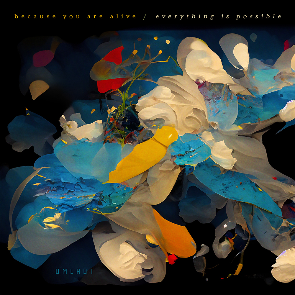 The album feels both intimate and expansive: a space for reflection, focus, and quiet optimism. There is warmth here, a sense of renewal that emerges not through crescendo or climax, but through gentle persistence — a reminder that beauty can live within repetition, texture, and imperfection. The cover art reflects this same spirit — an abstract bloom of color and motion, where organic forms meet fluid bursts of paint and light. It mirrors the music’s balance of structure and spontaneity, suggesting the moment when sound and life intertwine — alive, vibrant, and endlessly possible. Because you are alive, everything is possible is an exploration of hope rendered in sound — an aural landscape that invites you to notice the simple fact of being, and the infinite potential that flows from it.